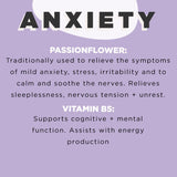 PASSIONFLOWER: Traditionally used in western herbal medicine to reduce and relieve the symptoms of mild anxiety, stress and nervous tension, relieve irritability, and calm and soothe the nerves.
