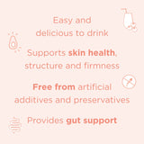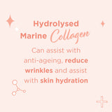- Research shows our collagen has anti-ageing benefits, and can assist with reducing skin wrinkles + increase skin hydration